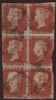 Great Britain SC#3 Queen Victoria 1d Red Star imperf on blued paper – block of 6 (K-i to K-J, M-I to M-J) Plate #74 - Used in Ireland - unusual multiple with obvious faults/thins - $150.00 -new