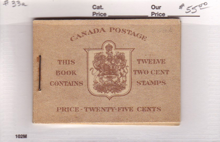 34d - KGVI War Issue 3¢ carmine - French - 17mm staple - surcharge rate inside cover (McCann #34h) $90.00 - new