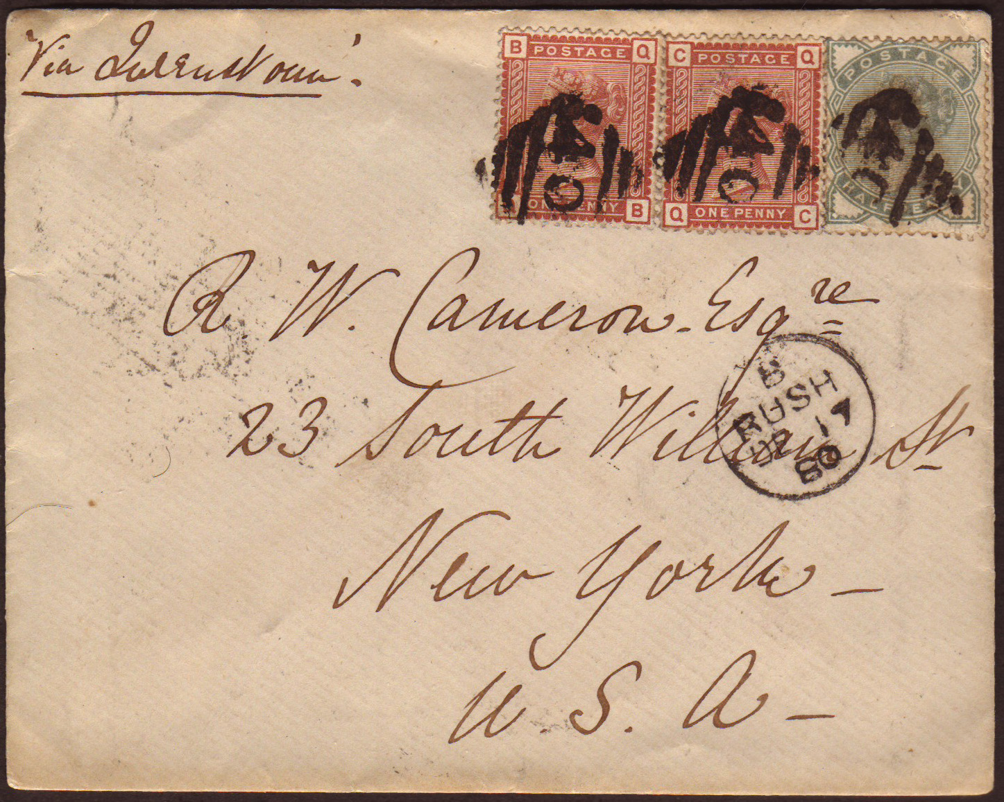 Great Britain 1898 Cover from Glasgow Scotland to Detroit, Michigan USA 1898 cover from Glasgow, Scotland to Detroit, Michigan, USA, with QV 2 x 1d + 1 x ½d tied with Glasgow Jan 20, 1898 cancel. Reverse shows Detroit STA A. Mich Recd Feb 1, 98 receiving cancel