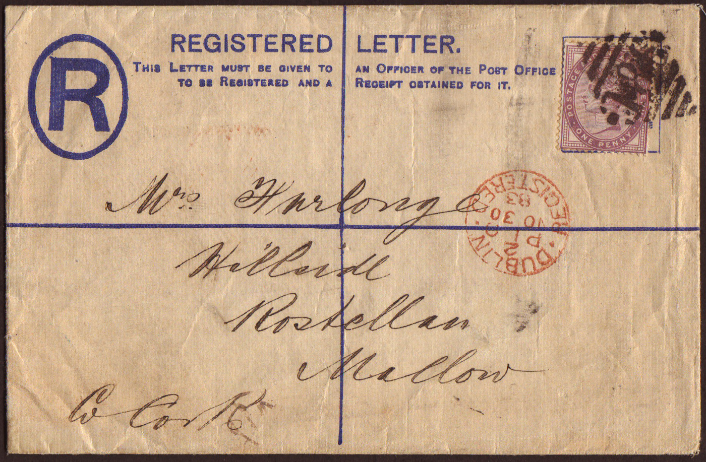 Great Britain 1887 Postal Card (CP16) from Dublin, Ireland July 2/87 To Shanghai China - reverse shows Hong Kong receiving cancel July 6/87