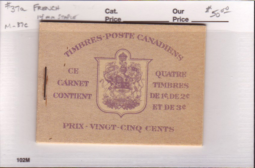 37a - KGVI War Issue 1¢ + 2¢ + 3¢ - French - 14mm staple - type I cover 7¢ /6¢ rate (McCann #37c) $50.00 - new