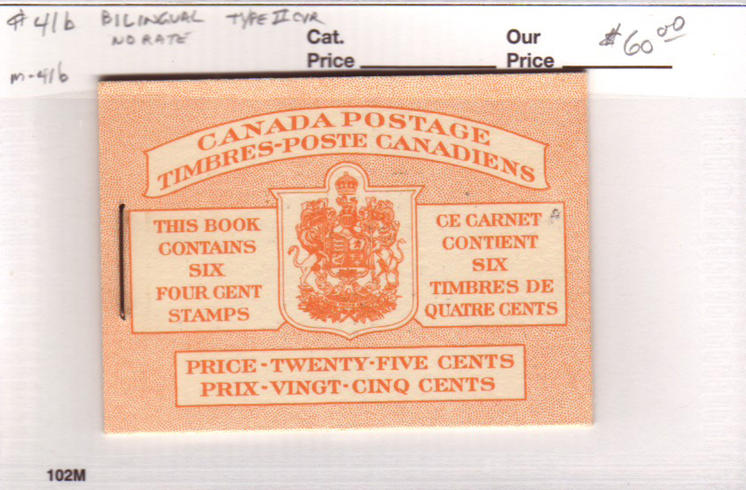 41b - KGVI Post/Postes 4¢ dark carmine - bilingual - 17mm staple type II cover - no rate - (McCann #41b) $60.00 - new