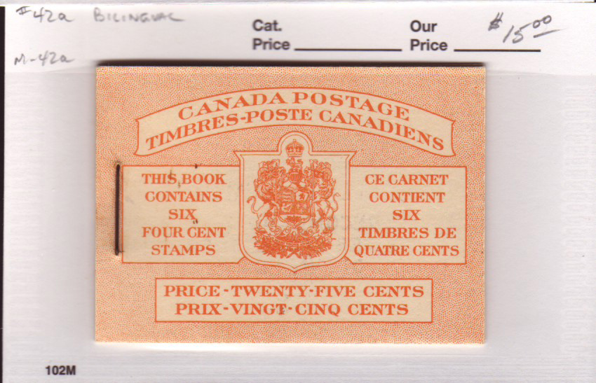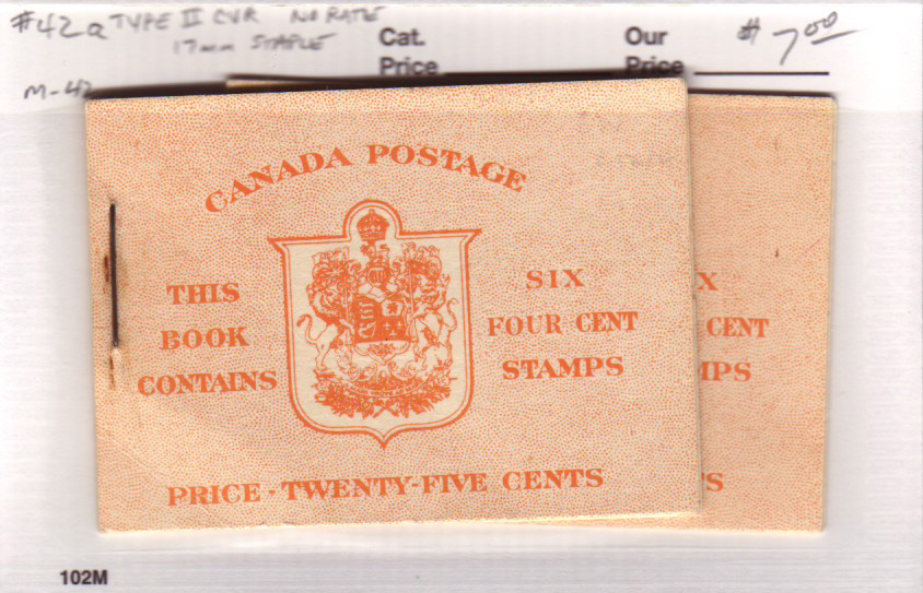 42b - KGVI Post/Postes 4¢ orange - stitched type II cover - no rate - (McCann #42a) $20.00 - new