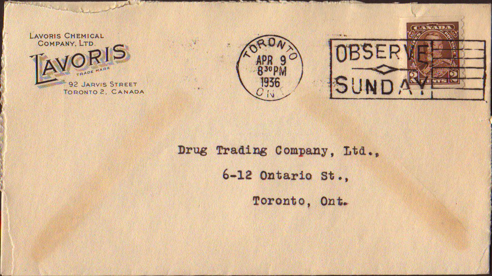 - Canada 41 – 3c small queen cover - TORONTO to SARNIA